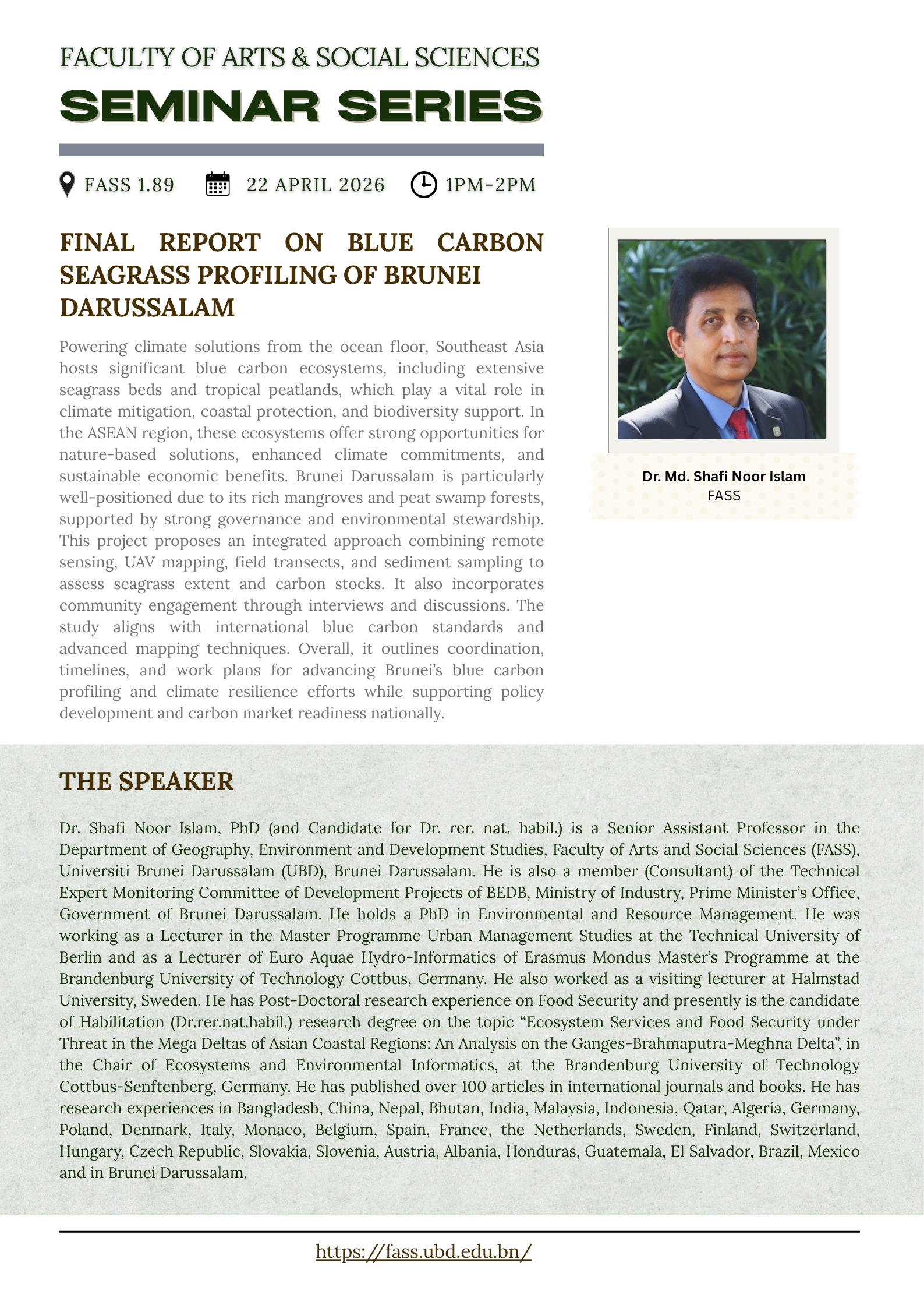 FASS Seminar Series | Final Report on Blue Carbon Seagrass Profiling of Brunei Darussalam